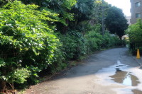 ここは西側の通路(南行き)だが、旧堀跡ではと思いたくなる… |