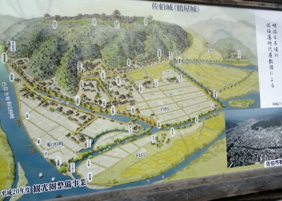 | 佐伯市観光協会が登城口に設置の、「鶴屋城鳥瞰図」… |