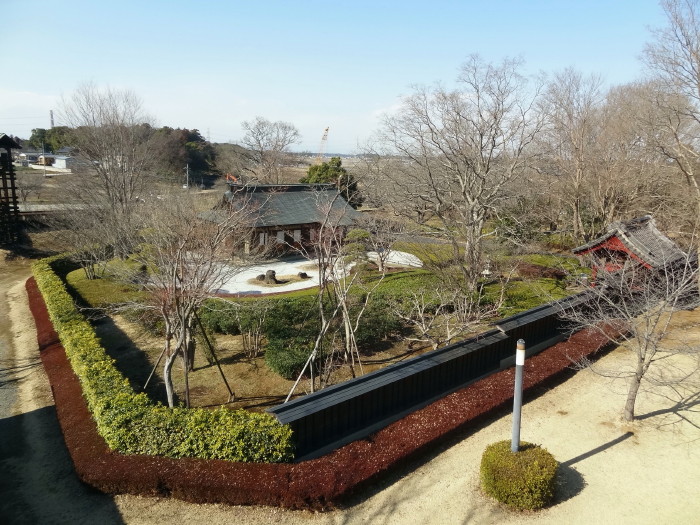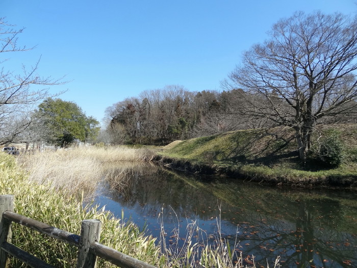 | 逆井城が、飯沼に臨む標高20ⅿの台地先端にあり、城の北側は飯沼が洗い、西側は入江の蓮沼に接していました。飯沼は江戸時代の新田開発により湖水はなくなりましたが、およそ幅1km・南北30kmにわたり、その名残りを残しています。今から約410年前の戦国時代にこの飯沼が小田原の後北条氏と佐竹氏・結城氏・多賀谷氏らの領国の境目でした。 進攻を続ける後北条氏は飯沼に築城をはじめ、天正5年(1577)10月、北条氏繁(玉縄城主)は、藤沢より城の建物をつくるための大鋸引きの職人をよんでいます。城主となった氏繁は、盛んに佐竹・下妻方面の動静を報告していますが、翌天正6年(1578)にこの飯沼城中で没し、その後氏舜が城代となりました。 天正18年(、豊臣秀吉は小田原城に後北条氏を滅し、この飯沼城も廃城となりました。 (城跡公園入口にあった案内板の「逆井城の歴史」より) ※ 駐車場・冠木門のところに来ると、何か、独特の雰囲気が漂ってくる…推定復元や他の城などからの移築遺構もうまく馴染んでいる。北条氏の築城術があちこちに見られ、横矢の掛かった空堀がいくつも造られているのは、私のような城攻め初心者にはとても分かりやすく、楽しく見学させてもらった。これだけ見所のある城跡公園でもあり、また、4月には桜まつりもここで行われることもあり、坂東市でも観光資源として力を入れていることがうかがえるので、是非、アクセスの問題を改善してほしい。訪問したい人はたくさんいると思うが、現状の公共交通機関では非常に行きにくい!是非、対策を検討していただきたいと思う。 |