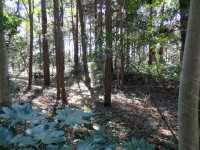 | 縄張図の、郭IIの空堀が描かれているところだろう…幅はかなり広いが、深さ的にはかなり風化していると思われる。 | 左下の部分の続きのところ…ここに見えるのも土塁の残存でしょうね! | |