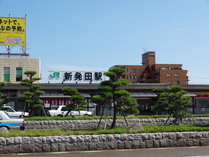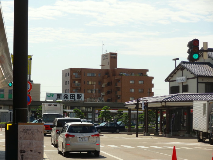 | 新潟駅から北東へ約27㌔、羽越線あるいは白新線で、約25~35分で新発田駅に到着 | 途中の田園風景、青い空を見ながらのんびりローカル線の旅もいいですね! | 新発田駅に到着 …”きらきらスポット”らしい!? |