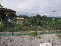 | 専門学校の駐車場の一角に残る環濠の名残…右の2枚の写真のフェンスのすぐ向こうも環濠の跡とのこと… |