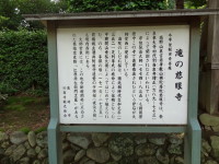 | 滝の慈眼寺…高野山真言宗華敷山(けふざん)補陀落印慈眼寺。奈良東大寺初代別当良弁僧正(689-773)によって開創されたといわれている、等々の説明版(左の写真)。右の写真が本堂。 |
