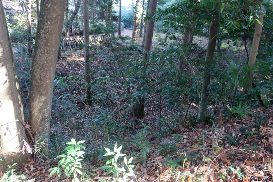 | 排水溝のような、空堀跡と思われる部分が見える… | |||