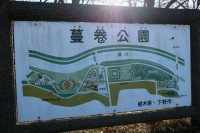 | 道路上に上がって、姿川方向を見る…公園になっているようだ(右下の写真参照) | 上の道路に上がると「箕輪城跡0.2km」との標示柱が…上位機を離れて200mほど来たようだ | ||