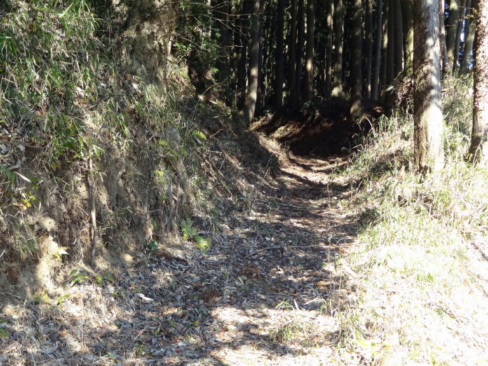 | 再び堀底道を北方向へ進む(縄張り図のHの場所)…右の写真に続くがこの辺はそこそこ整備されていて歩きやすい… |
