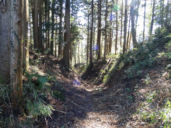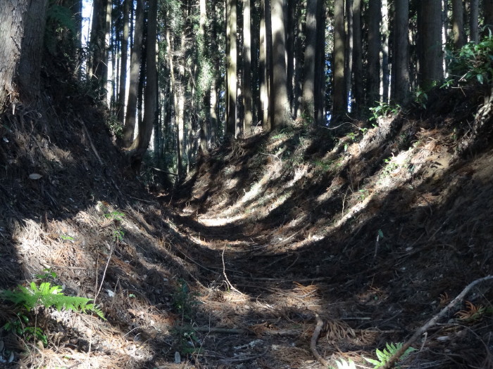 | 空堀をどんどん進むと最初の、永徳寺の大手口からの空堀に至る… |