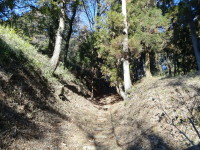 | 上の土塁上から東側の空堀を見下ろす…この辺は比較的整備されている |