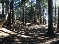 城山権現…縄張図のDの場所。この北方向に櫓台跡があるとの情報もあったが確認できず。一応土塁の北東の角が少し削平されているようで、狭いが簡単な物見櫓でもあったのか? |