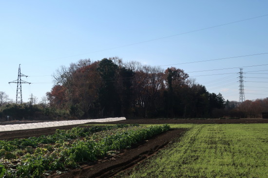 | 雑木林の場所の農道に沿って、東西に約200mの薬研堀を見る… |
