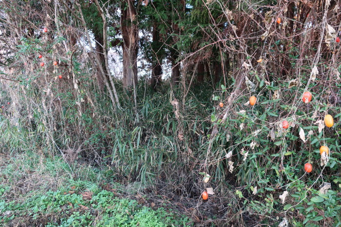 案内板のすぐ横(南側)…藪状態で中の状況もわからない。 |