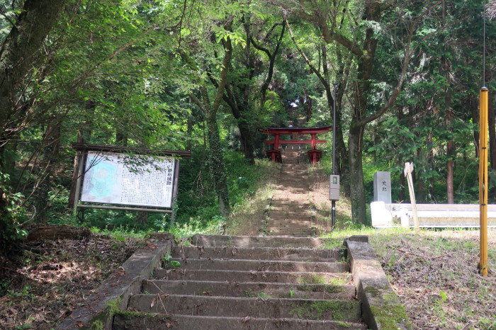 | この駅から北方へ約10分歩くと新府城…要所要所に道標が整備されている。 | 10分ほど歩くと鳥居が見えてきた… | |