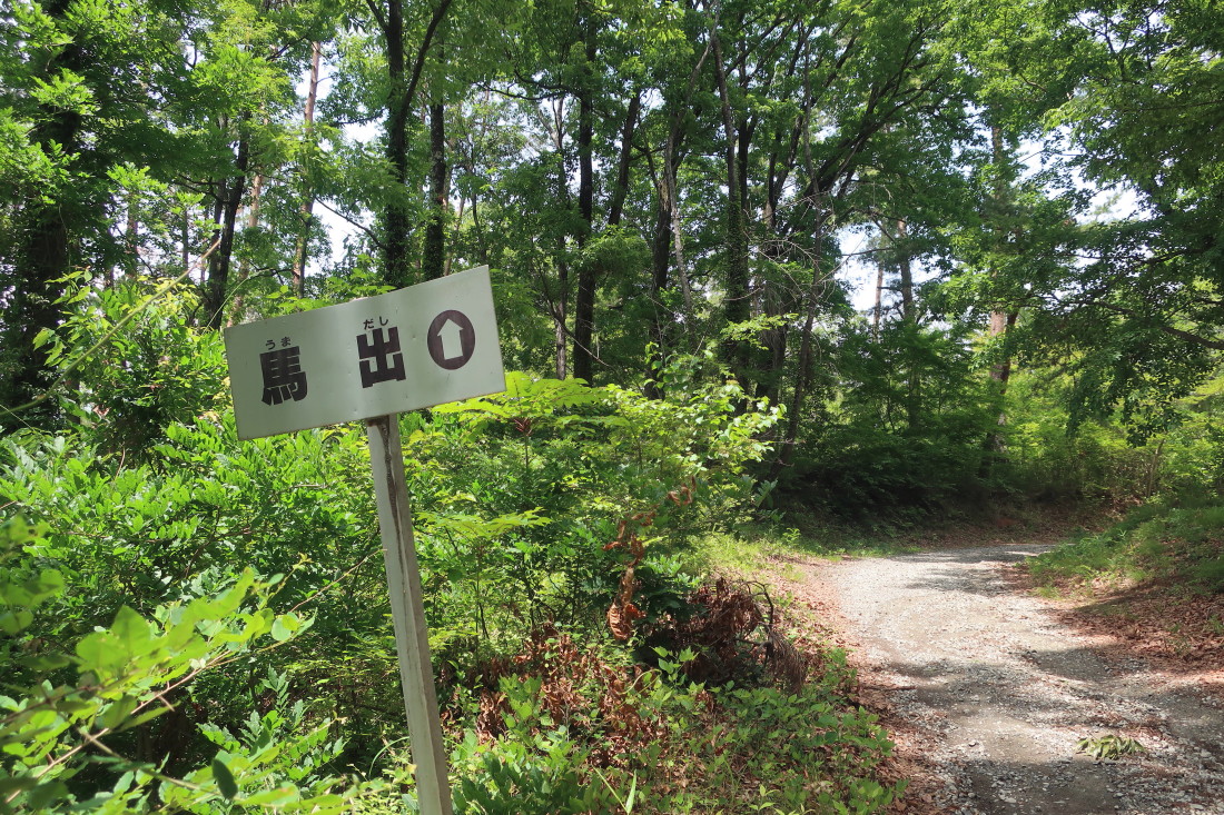 | 「二の丸」との標示ががあった… | 二の丸から、南側へ出て広い道を下っていく…そこには「馬出」との標示柱があった。 | |