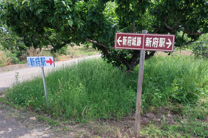 | 「国指定史跡 新府城跡」の案内板… | ||