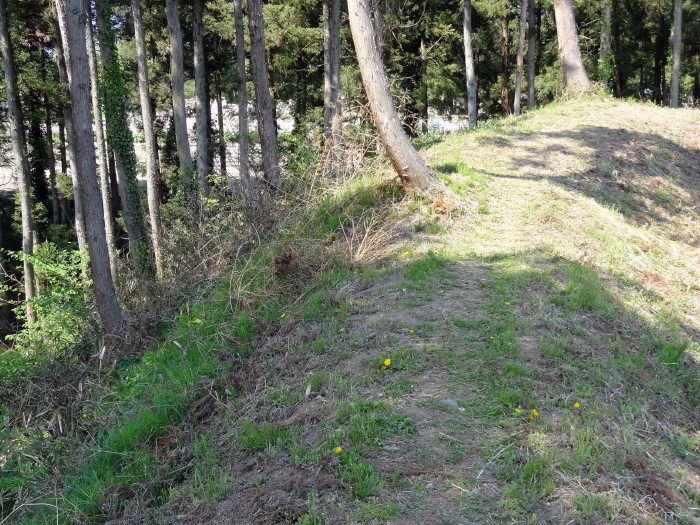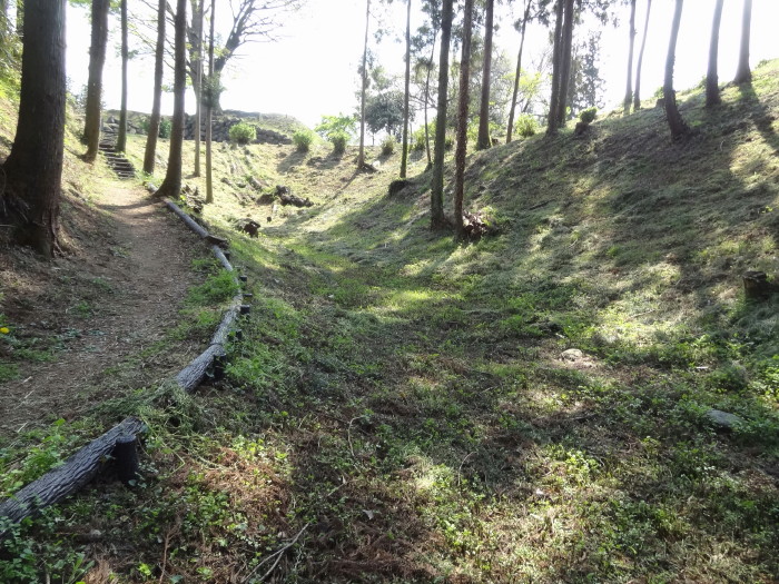 | 三の丸と二の丸の間の空堀… | 通路から見る北郭と三の丸の間の堀… | |