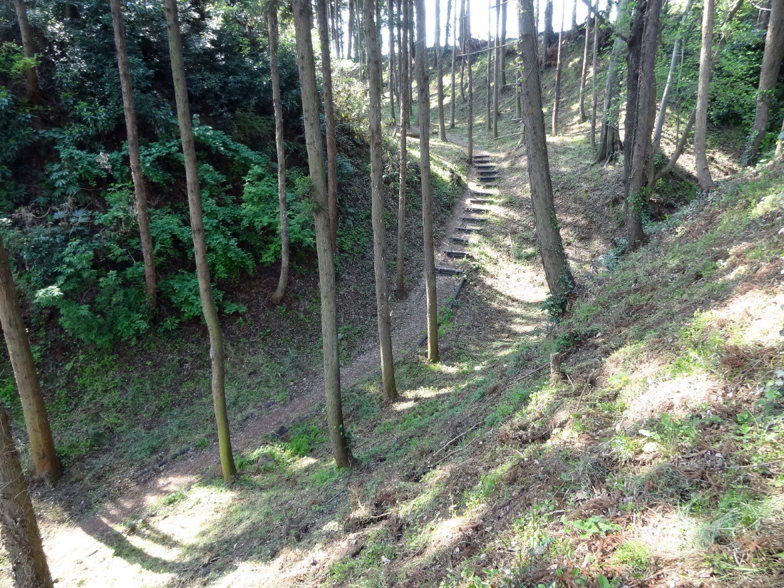 | 林間の堀底道をひたすら歩く…よく整備されており歩きやすい。JR東日本の駅からハイキングのコースになっており、多くの人と行き交った。 | ||