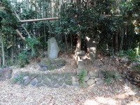 | 本丸虎口を入って、白井城址との木柱がある場所から東側に延びる空堀を見る…右側の土塁の向こうが本丸部分… | 虎口の石垣… | |
