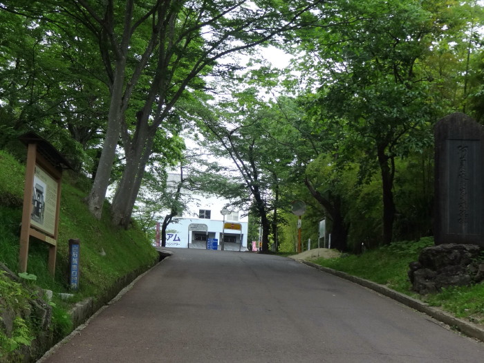 裏御門跡…この先は県立白石高校旧校地(男子校)。2010年に白石女子高校と統合・共学化され、西400Mのところに移転した由。 |