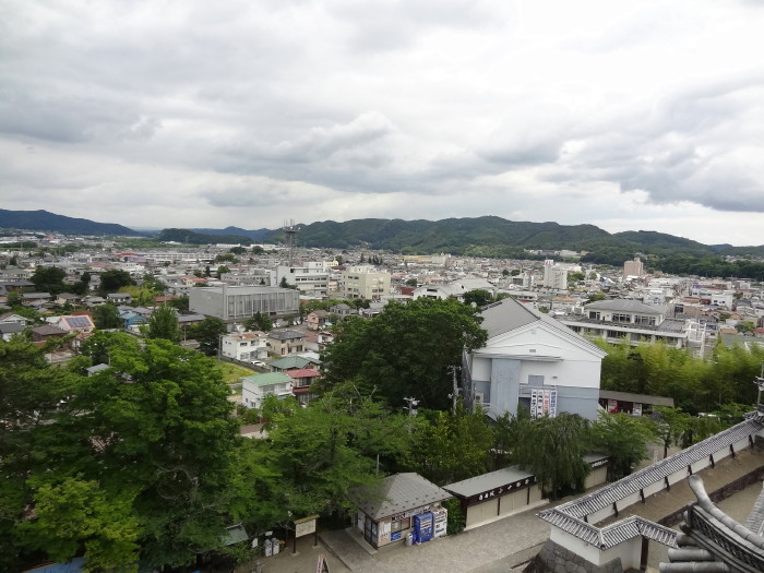 | 最上層階から華頭窓越しに白石市内を臨む… |