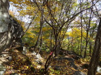 | 右上の写真の登城口から、南面尾根筋ルートに入り、しばらく歩くとこの様な石がごろごろしたエリアに来た…尾根道はっきりした登山道ではないが、基本的には尾根上を山頂を目指して行けばいいので比較的分かりやすかった。 |