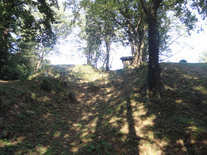 | 外郭(右側)と馬出(左側) の間 の出郭(大手) | 土塁(堀切が中央に) …左が馬出郭方向 |