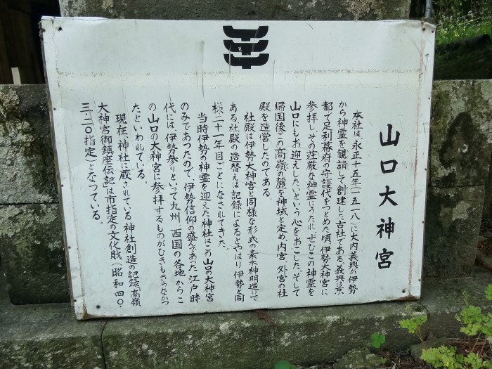 | 山口城跡の藩庁門のあった山口県庁西門から山口大神宮を目指して、鳥居のすぐ左の入り口(真ん中の写真)から、山口大神宮経由高嶺城へ…山口大神宮は永正15年(1518)に大内義興が伊勢から神霊を勧請して創建した古社。 |
