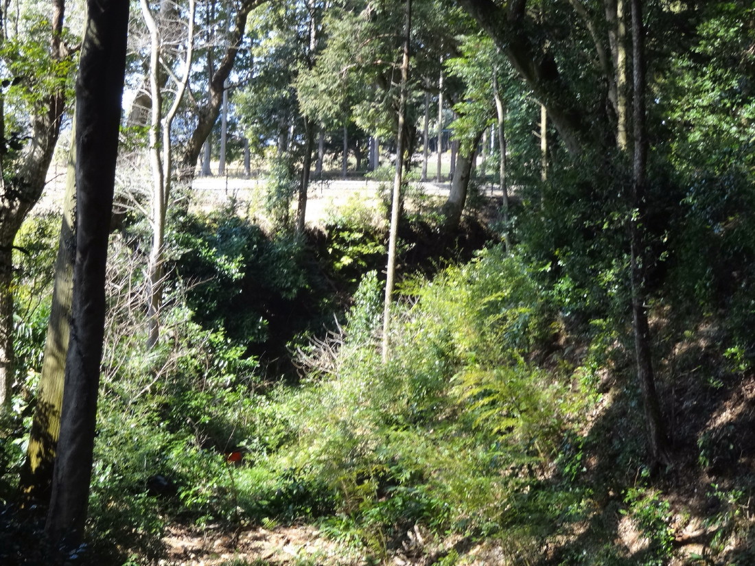 | 右上のの写真の土橋上から、右(南)側の堀底を臨む… |