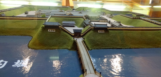 | 三重櫓に展示されていた、極楽橋と本丸の本城御門復元推定図… | ||