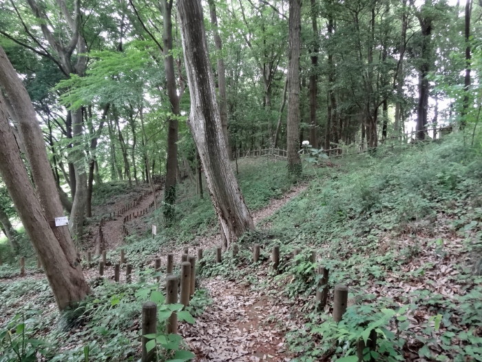 | 矢倉台の方(東側)へ行くと、土塁に竹藪… | |||