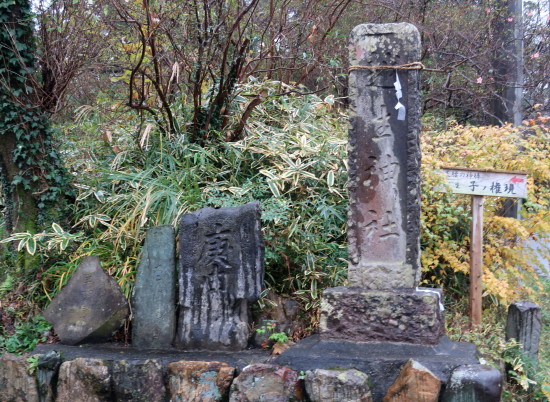 | 坂を上がっていくと左側に鳥居が… | 駅から10分ほど西方向へ歩くと、左手に「越生神社」の標示石柱が… | |