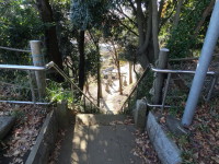 | 社務所の横の二の丸(駐車場)を左に見て神社本殿への階段方向へ… |