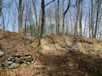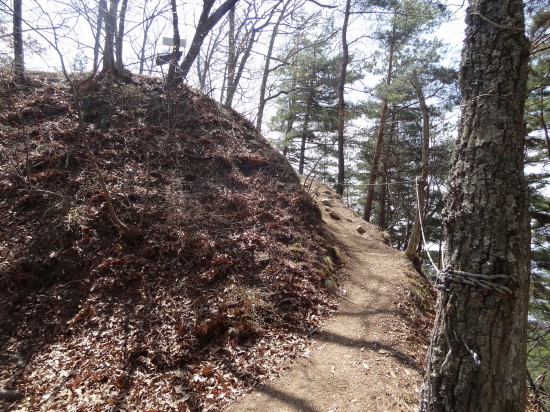 | この切岸は、自然の断崖と言うより人手が加えられたとみられる由。伊勢山方向からの道を抑えている位置になるとか… | |||