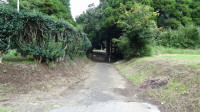 | 土塁を降りて、いわゆる大手道的なところ。前方が三の丸〜二の丸! |