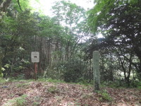 | 大手登城道への道標…ロープが張られ立ち入り禁止だだった | ||