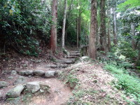 | 本丸へはもうすぐ… | 少し先に石垣が見えてきた… | |