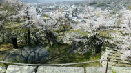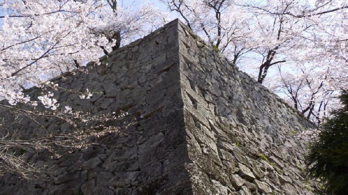 備中櫓の間にある石垣の隙間が向こうが五番門で、手前が六番門