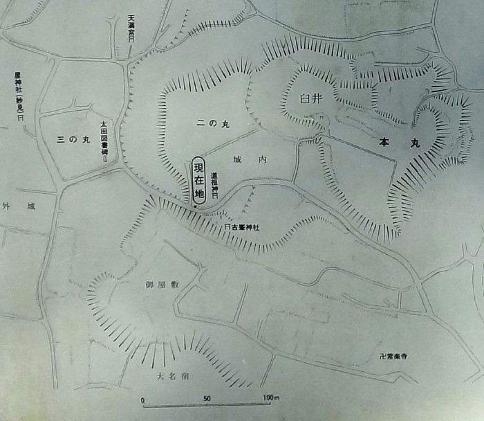 | 左側の星神社の傍から旧三の丸から 現在地とある城内→二の丸→本丸へと歩いた! | ||