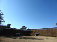| 富士見櫓 本丸の土塁南西部にあった櫓 「名前の通り、江戸時代には、遠く富士山の姿が臨めたと考えられる」と説明がなされている | 土塁越しに見る | ||