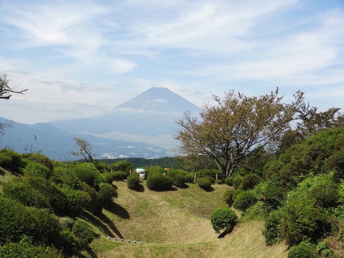 | 西櫓跡の手前で富士山を障子掘り越しに見る… | ||