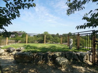 | 近鉄郡山駅が最寄り(徒歩約10分)だが、城跡に行くのに、一旦踏切を渡り東側に行き、暫し歩いてから再び踏切を越えて西側の城跡へ…左上の写真は線路の東側の「三の丸緑地」、右の写真の「鉄御門跡」から入った。 |