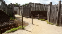| キレイな柵と堀だが、恐らく当時はもっと深かっただろう(ここは、現状は精々2m弱の深さ) |