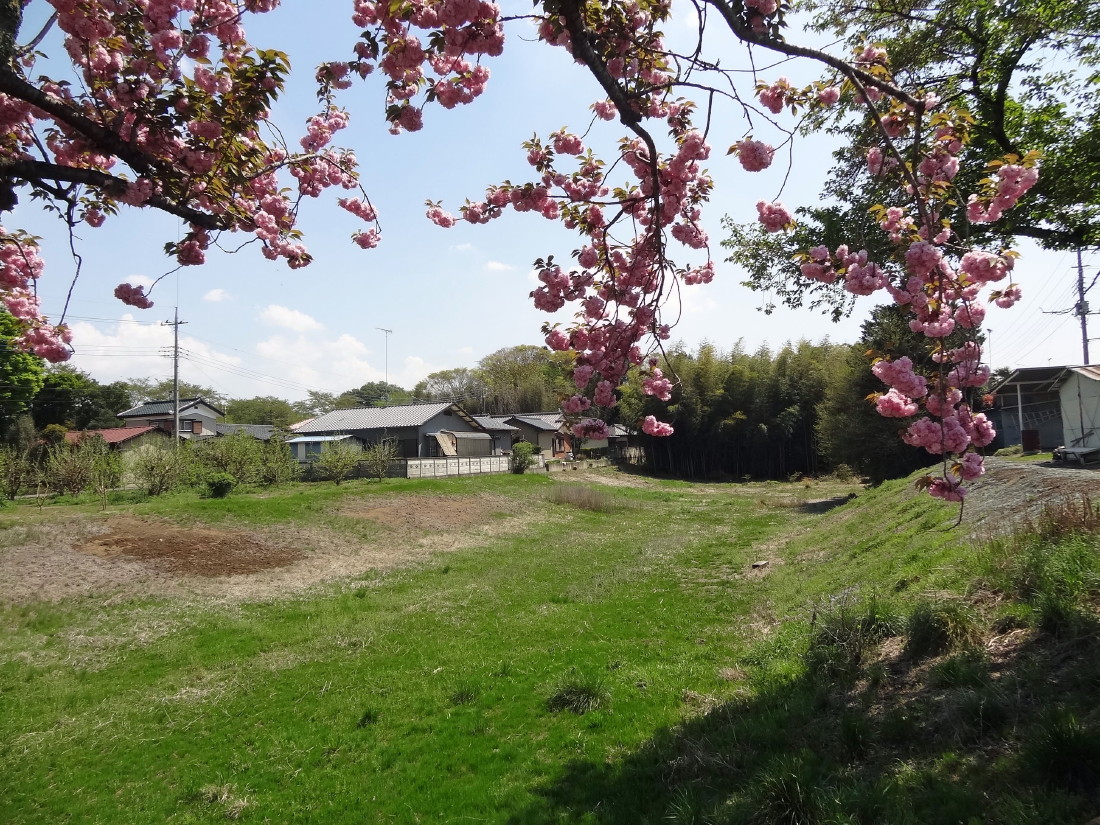 結城城跡公園が見えてきた…このすぐ右に空堀。城跡公園(実城)と結ぶ通路には土橋や木橋がかかっていたと思われる。 |