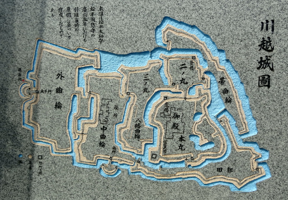 | 〜 築城者 太田道真、道灌父子 築城年 1457年(長禄元年) 主な城主 扇谷上杉持朝(初代城主)から上杉氏6代、北条氏4代、江戸時代には酒井家、堀田家、大河内松平家、柳沢家、秋元家、越前松平家、松井松平家と推移 廃城年 1869年(明治2年) 遺構 堀・土塁・御殿の一部 指定文化財 埼玉県有形文化財(本丸御殿)、埼玉県史跡 日本100名城 関東七名城 〜 | ||