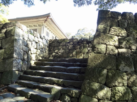 | 旧宝物館前の平場に通じる石段・石垣…この辺が江戸時代からの名残か!? | 勘介井戸… | ||