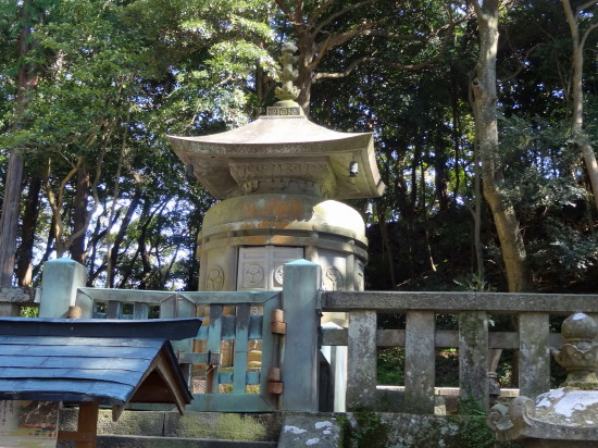 | 家康公の遺骸が埋葬された場所に建つ廟。家康公の遺命により、生誕地である岡崎や豊臣残党の拠点である大阪を臨む西向きに建てられている、との説明があった。 | 御廟所から本殿を見下ろす… | ||