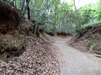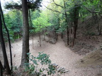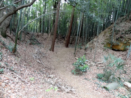 | 竹林に続いて木々の間の通路(大手口だろう)…堀底道かも? |