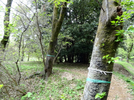 左上の写真のところから南下してゆくと、土塁が残る場所があった… |