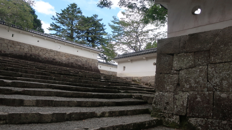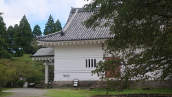 石垣の上に復元された長塀が見られる… | ||