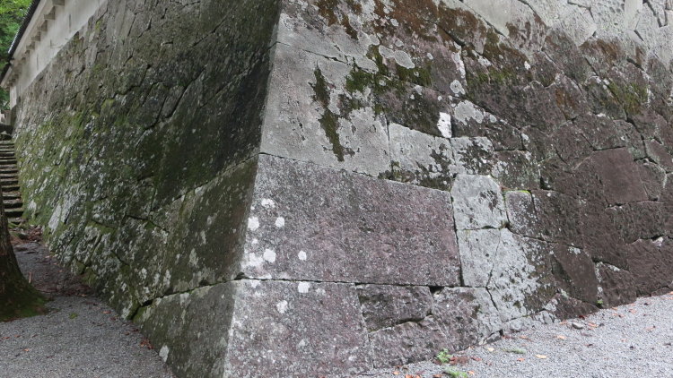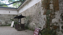 飫肥城は、中世には島津氏と伊東氏の抗争の舞台として、近世には飫肥藩伊東家の居城として、現在の宮崎県を代表する城であった。酒谷川に囲まれた 北側の一段高いシラス台地を縦横に空堀で区画した広大な城域を持ち、各曲輪の独立性の高さが特徴となっている。江戸時代の前期に本丸と二の曲輪とされている範囲だけでも東西約750m、南北500mに及ぶ広大な城であった。飫肥城の大手門は明治6年(1873)に取り壊されたが、昭和53年(1978)、飫肥城復元事業の第二期工事として、当時城郭研究の第一人者であった故藤岡通夫氏の設計・監修により、国内に現存する大手門を参考にして在来工法で再建された大手門は、木造渡櫓二階建て、高さ12.3mを測る。建築材は、飫肥営林署(当時)の三ツ岩学術参考保護林(現在、三ツ岩オビスギ遺伝遺伝資源希少個体群保護林)から樹齢百年の飫肥杉4本の提供を受けた。工事中に、礎石に刻まれた正徳3年(1713年)銘の碑文が発見されており、現在、大手門の内側に保存されている。 なお、現在みられる城内の石垣の大半は、貞享3年(1686)から元禄6年(1693)の大普請によって回収されたものである。 (現地に設置された案内板「史跡 飫肥城跡」説明文より引用。させていただきました。) |